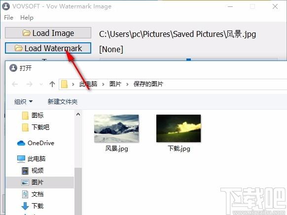 2、点击LoadImage,弹出打开框,选择需要添加水印的图片文件,然后点击打开